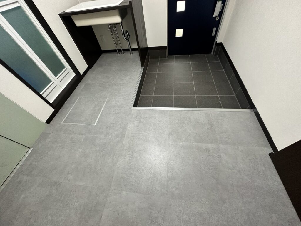 → グレーのタイルを採用し、空間全体を引き締めながら、