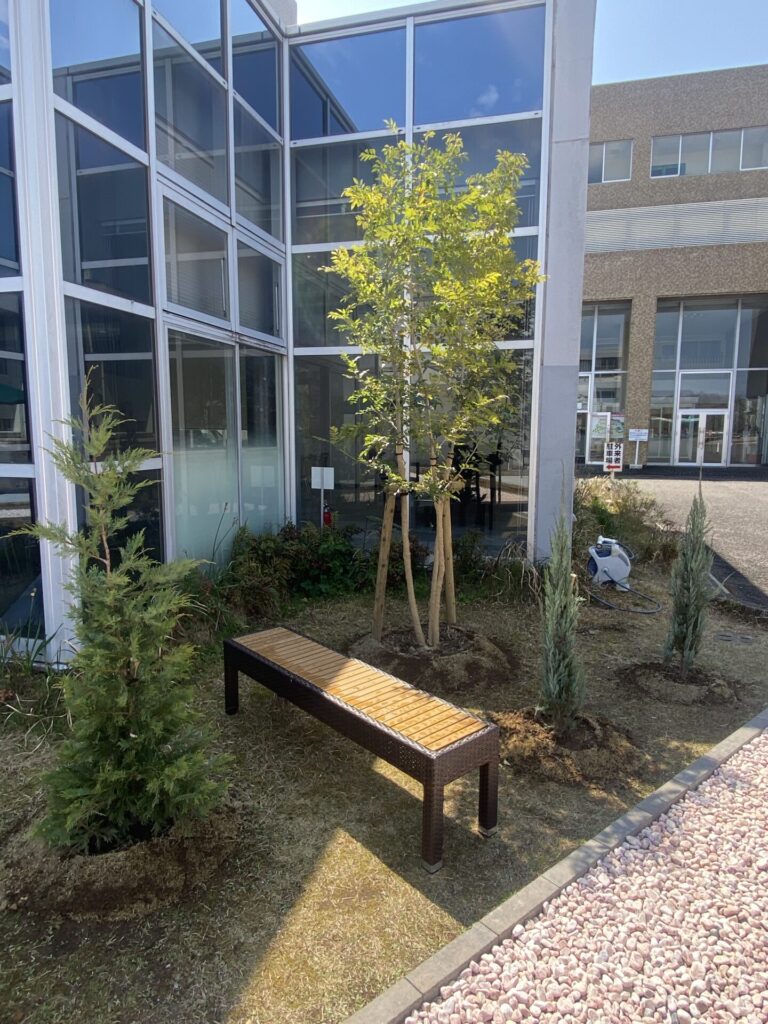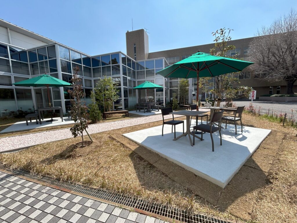 教育施設における外構工事として、景観だけでなく居心地の良さにも配慮し、学生の皆さまが思わず立ち寄りたくなる心地よい空間へと整備しました。