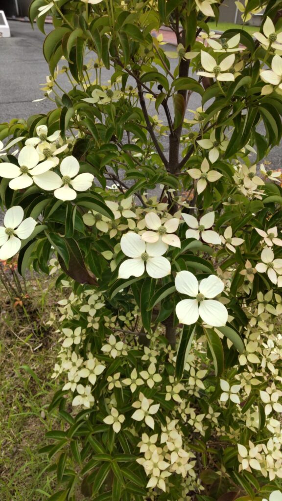 常緑樹と花の咲く樹木をバランスよく配置しています。